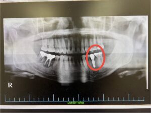 破折歯を抜歯後、抜歯窩が完全に治癒するまで十分な期間を置き、その後インプラントを埋入しました。
