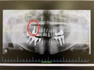 患者様は以前、他院で右下に3本、前歯に2本のインプラント治療を受けられており、当院では左下に2本のインプラントを埋入し、そちらは良好に機能していました。
